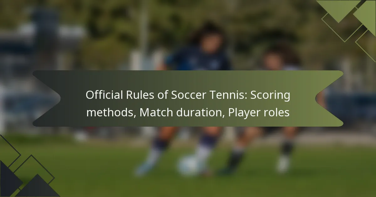 Soccer tennis combines elements of soccer and tennis, utilising a point system where players or teams score by winning rallies. Matches can be played in singles or doubles formats, typically lasting between 30 to 60 minutes, and involve specific scoring rules. Player roles are essential, as each participant has defined responsibilities that impact the team’s overall strategy and performance.
